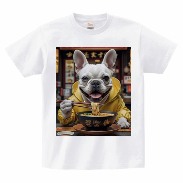 おもしろデザインTシャツ(フレンチブルドッグがラーメンを食べる)