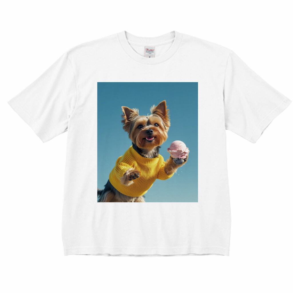 おもしろデザインTシャツ(ヨークシャテリアがアイス食べる)