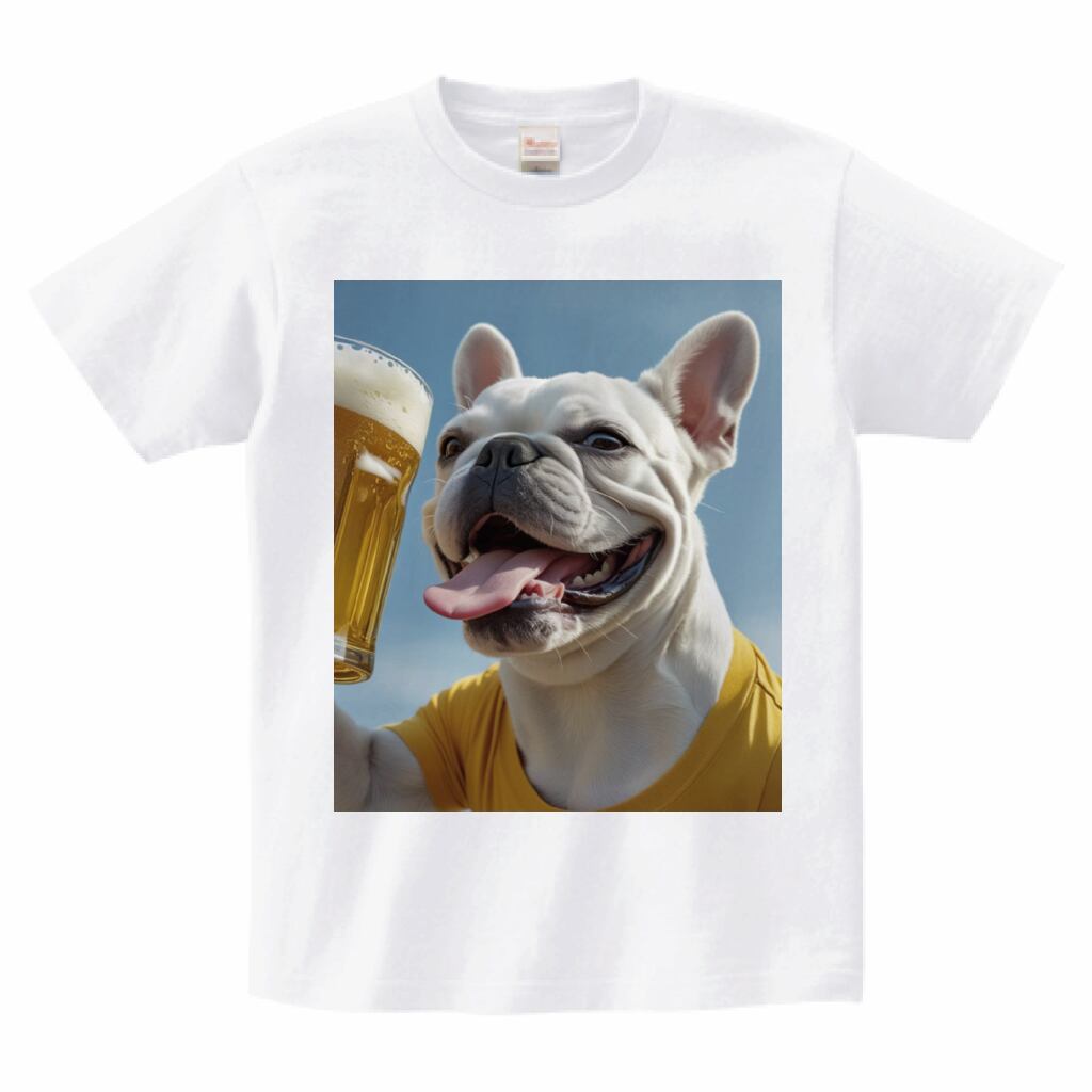 おもしろデザインTシャツ(フレンチブルドッグがビールを飲む)