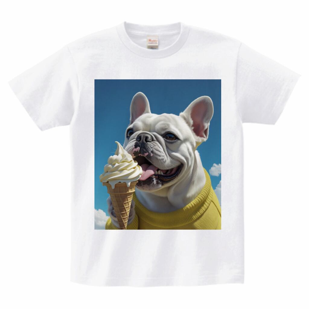 おもしろデザインTシャツ(フレンチブルドッグがアイスを食べる)