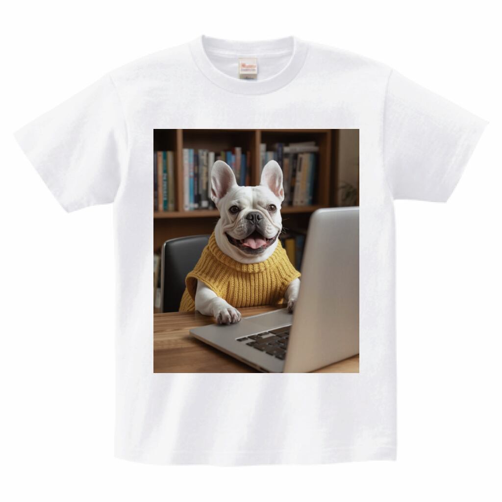 おもしろデザインTシャツ(フレンチブルドッグ仕事をする)