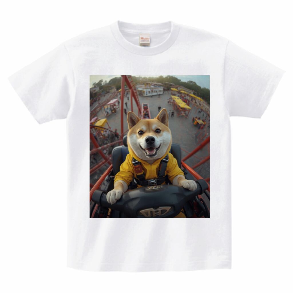 おもしろデザインTシャツ(柴犬がジェットコースターに乗る)