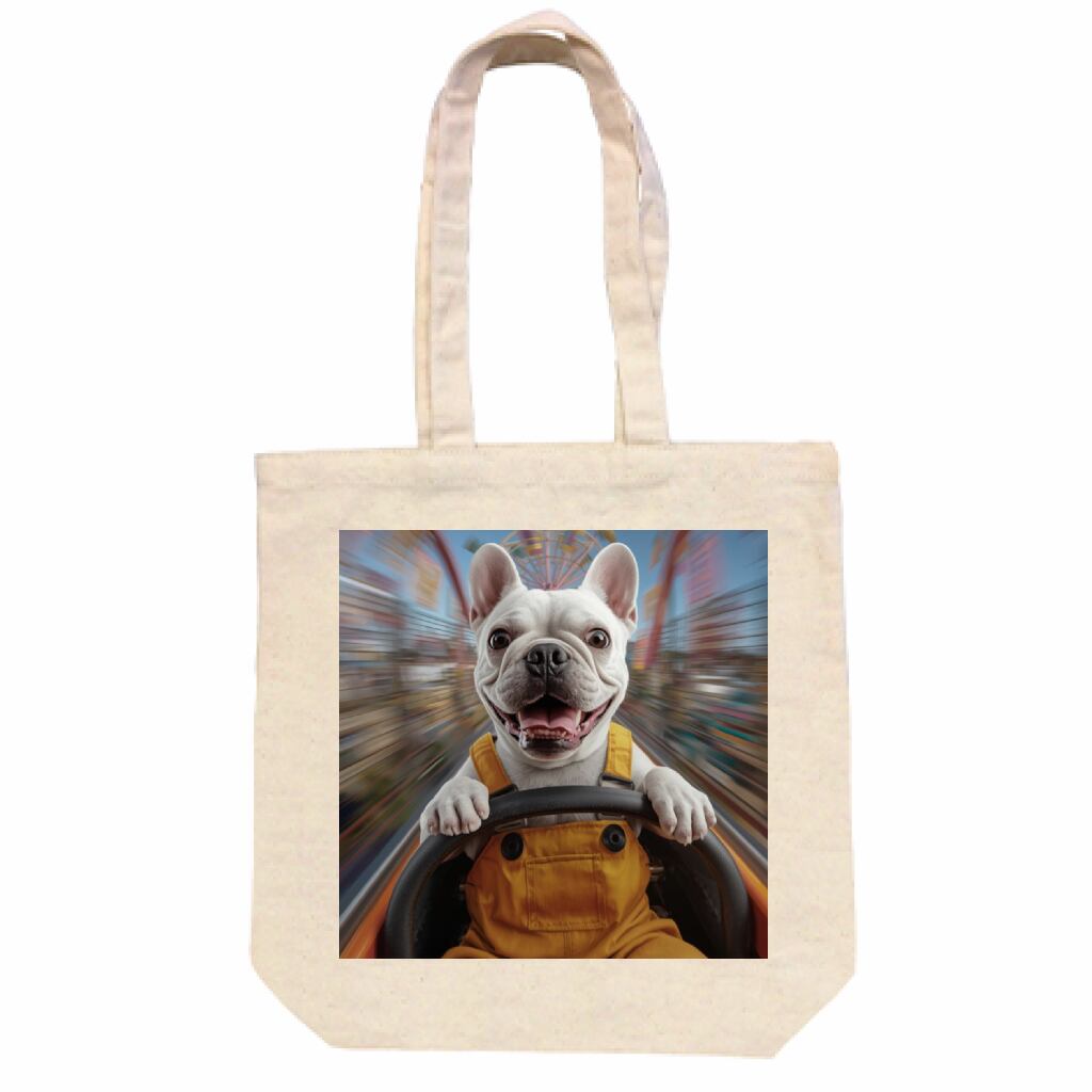おもしろデザイントートバッグ(フレンチブルドッグがジェットコースターに乗る)