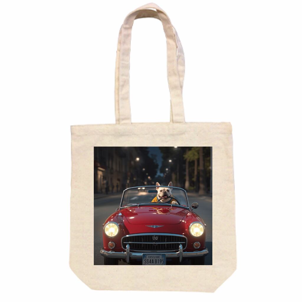おもしろデザイントートバッグ(フレンチブルドッグが車に乗る)